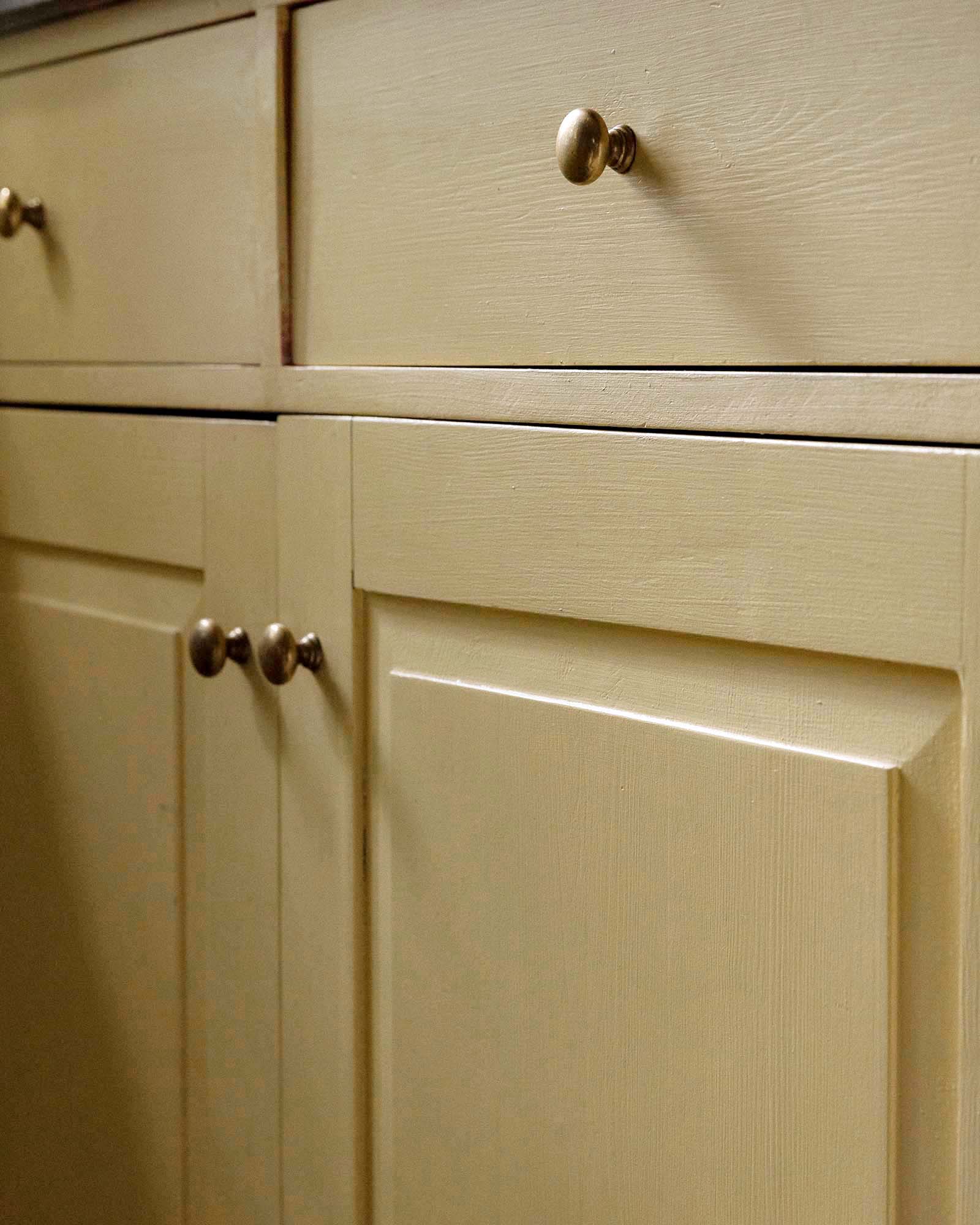 Klassisk, rund knop i ubehandlet messing til skuffer og skabslåger. Bemærk venligst, at overfladen ikke er helt glat, men har nogle ujævnheder, da messingen ikke er glatslebet fra starten. Kommer med M4 gennemgående skrue, til montering fra indersiden af et skab eller skuffe, i et forboret hul. Knappen fås i fem forskellige størrelser. Passer godt til vores forskellige skålgreb, se nedenfor, under Relaterede produkter.