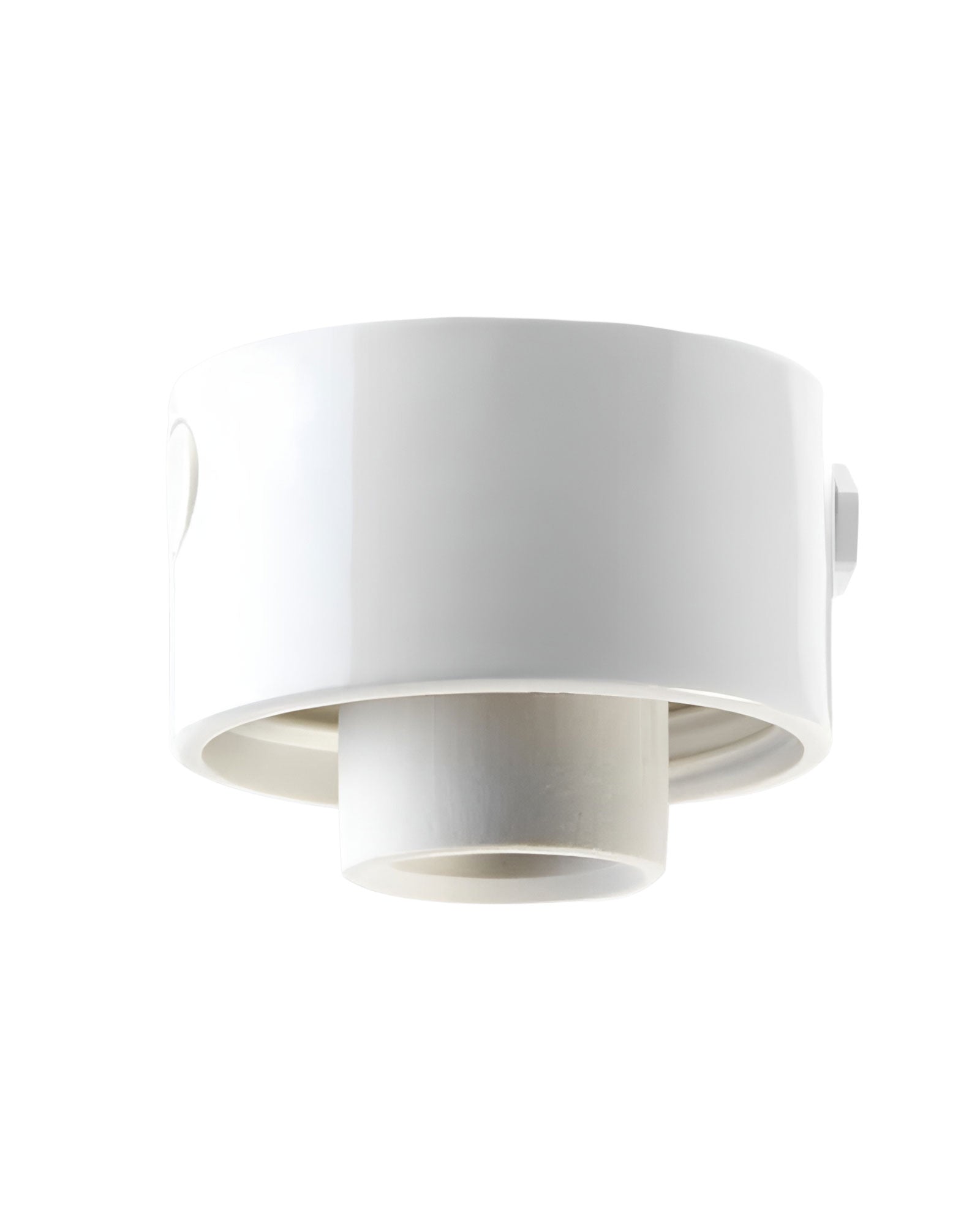 Lampesokkel i hvidt porcelæn med kabelindføring i siden. Kan kombineres med staldglas eller kuppelskærm. Se nedenfor under Relaterede produkter.