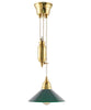 Klassisk hejselampe i messing med skærm i grønt glas.