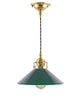 Loftlampe – Skomagerledning messing med lige grøn skærm 25 cm