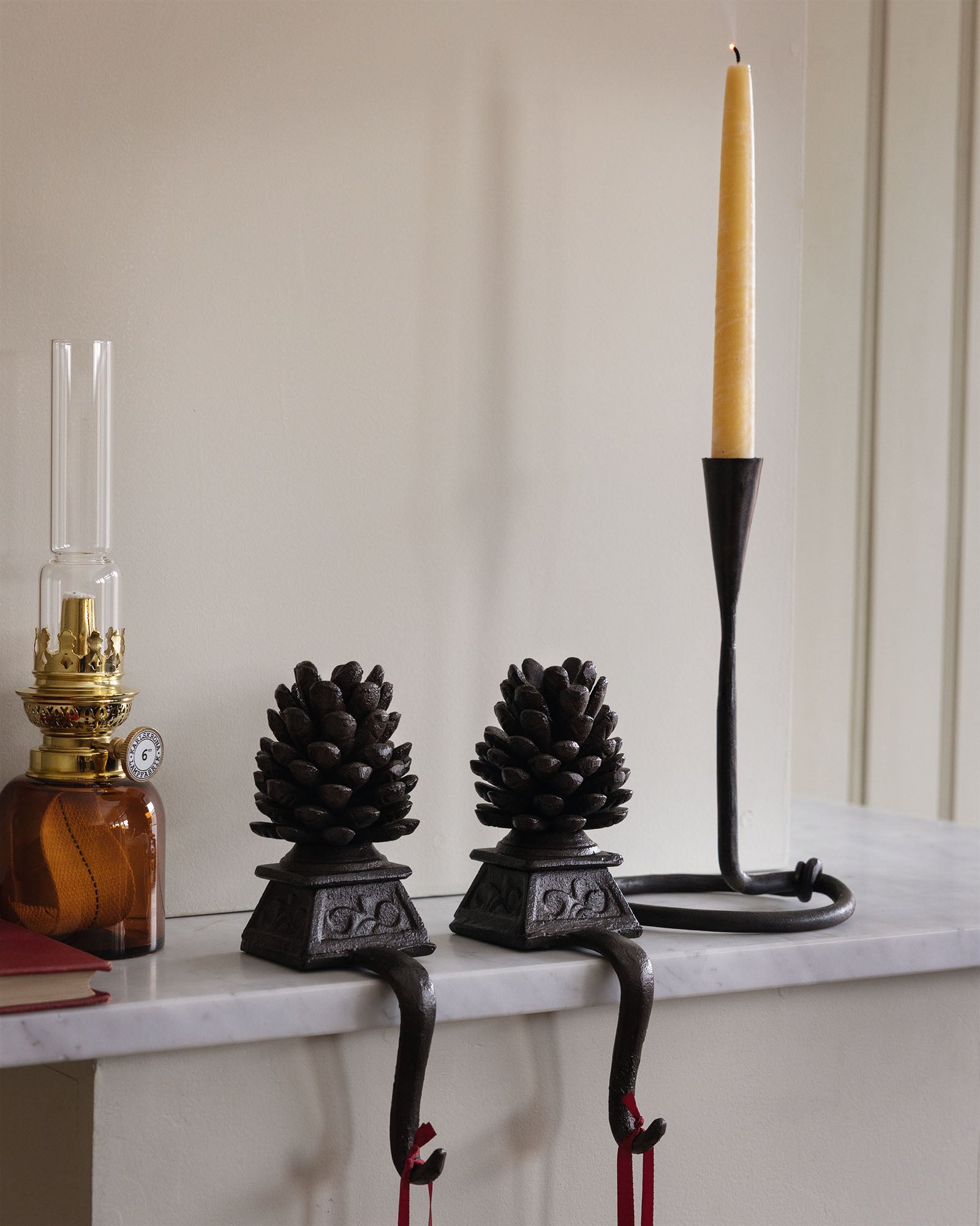 Schöner Haken, der am Kaminsims platziert werden kann. Kann zum Aufhängen von Weihnachtsstrümpfen oder Ähnlichem am offenen Kamin verwendet werden.