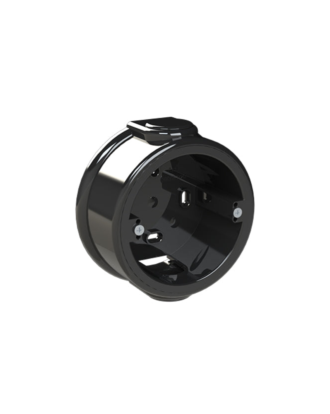 Der Ring ist rund und aus halogenfreiem Thermoplast mit glänzend schwarzer Oberfläche gefertigt. Ein Schutzrahmen ist im Lieferumfang enthalten, und die Konstruktion ist für die feste Installation im Innenbereich vorgesehen.