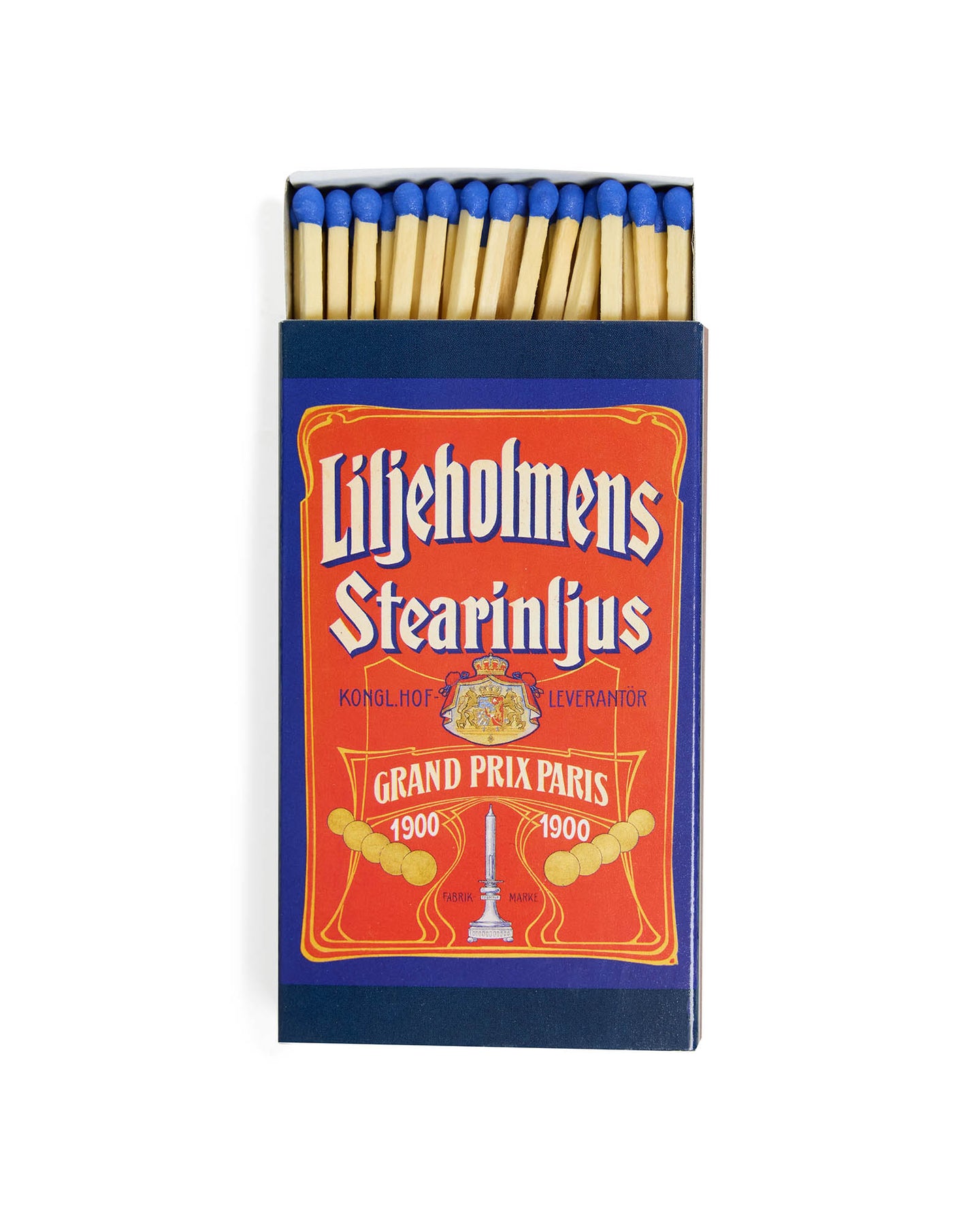 Grand Prix ist eine dekorative Streichholzschachtel mit einem Motiv aus einer alten Werbeanzeige für Liljeholmens Kerzen. Die Streichhölzer sind 9,5 cm lang, robust und einfach zu handhaben.