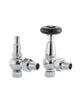 Valve for a traditional-style radiator. The classic chrome design combined with a black wooden wheel adds an elegant detail to the radiator.