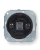 Insert for double USB-C socket in black porcelain for flush mounting in wall box.