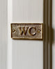 Rectangular WC sign made of brass. The unlacquered brass will darken and develop a beautiful patina over time.