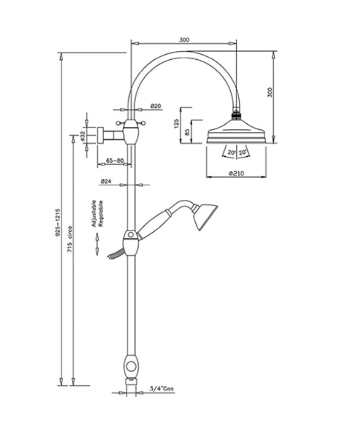 Kensington retro es un juego de ducha con un cabezal grande y una ducha de mano con mango blanco. El juego es de muy alta calidad y ofrece buenas posibilidades de ajuste. El gran cabezal de 200 mm de diámetro es inclinable y la placa del filtro es extraíble para su descalcificación. La parte superior se puede girar y ajustar en altura. El soporte de la ducha de mano se puede deslizar a lo largo del tubo de alimentación y es giratorio. Este set se parece mucho al set de ducha Maxima Classic sin mezclador, pero tiene un cabezal de ducha y una ducha de mano diferentes.