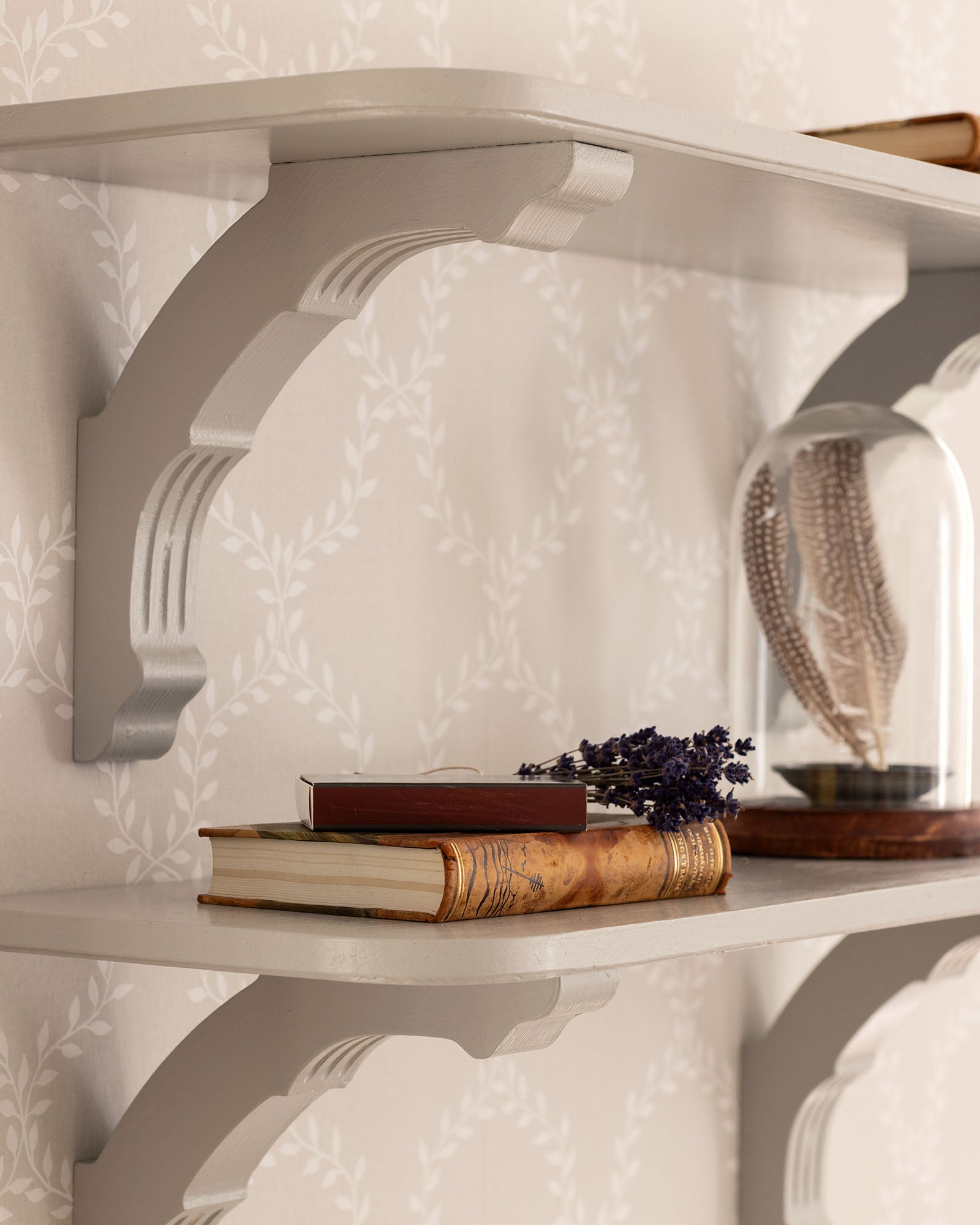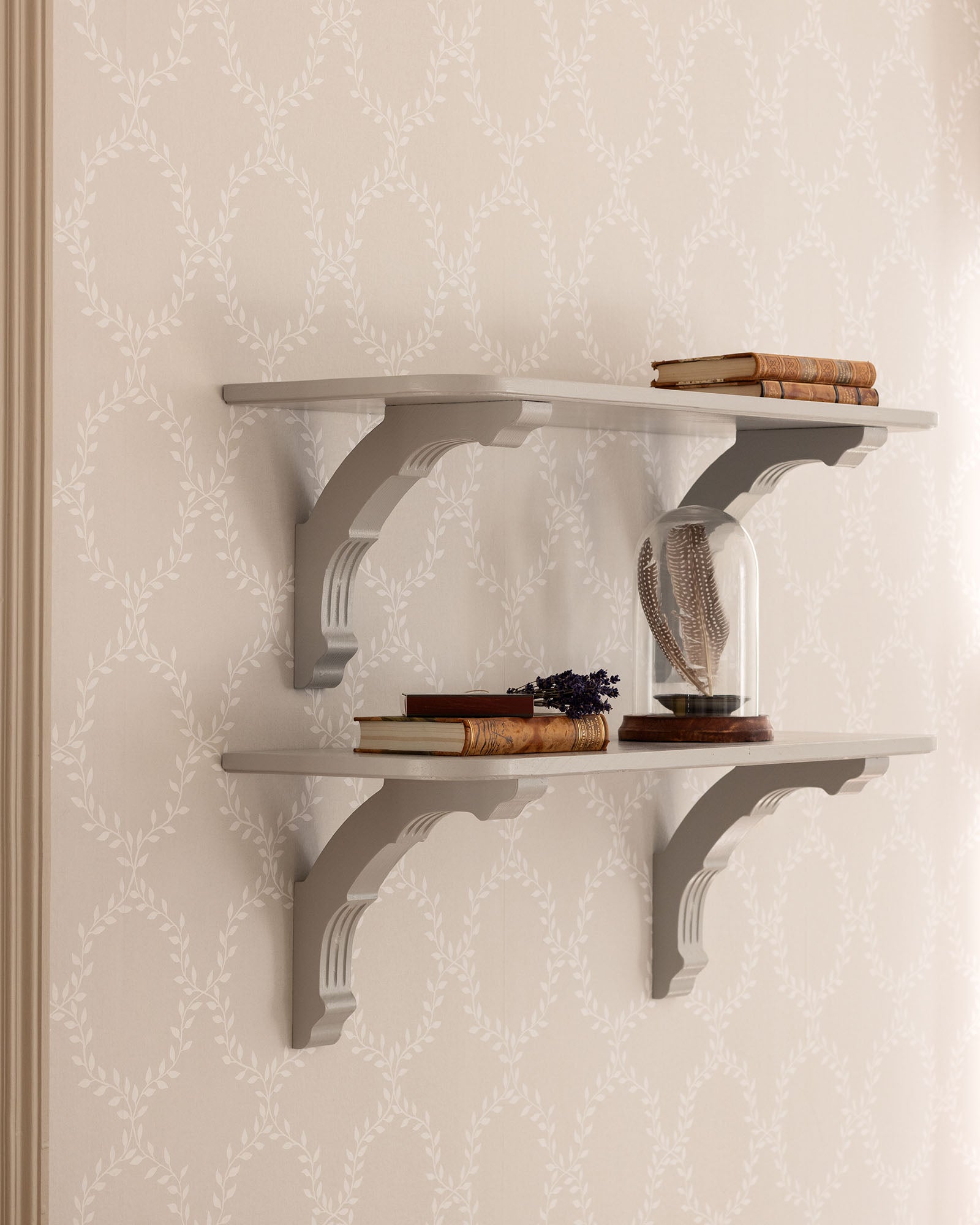 Para una buena estabilidad, el soporte debe medir aproximadamente entre 2/3 y 3/4 de la profundidad del estante y colocarse de forma uniforme, con los soportes exteriores ligeramente más cerca de los extremos del estante. Como orientación, se recomiendan tres soportes para un estante de 160 cm y cuatro soportes para uno de 200 cm. Taladre previamente el soporte y utilice tornillos adecuados al tipo de pared y a la carga que soportará el estante. En caso de cargas más pesadas o si el estante se utiliza como perchero, puede ser necesario reforzar la fijación a la pared. Tras la instalación, los orificios de los tornillos pueden rellenarse y el soporte pintarse en el color deseado.