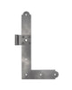The fitting is made of cold-rolled high-strength steel and is delivered untreated. We recommend applying rust protection oil or painting the hinge with linseed oil paint in the same color as the window to prevent rust. The hinge is fastened with brads or domed screws and is mounted together with a stub hook and corner bracket—see below under Related Products. For the correct fit, the hinge’s curl may need to be bent slightly depending on the actual depth of the stub hook.