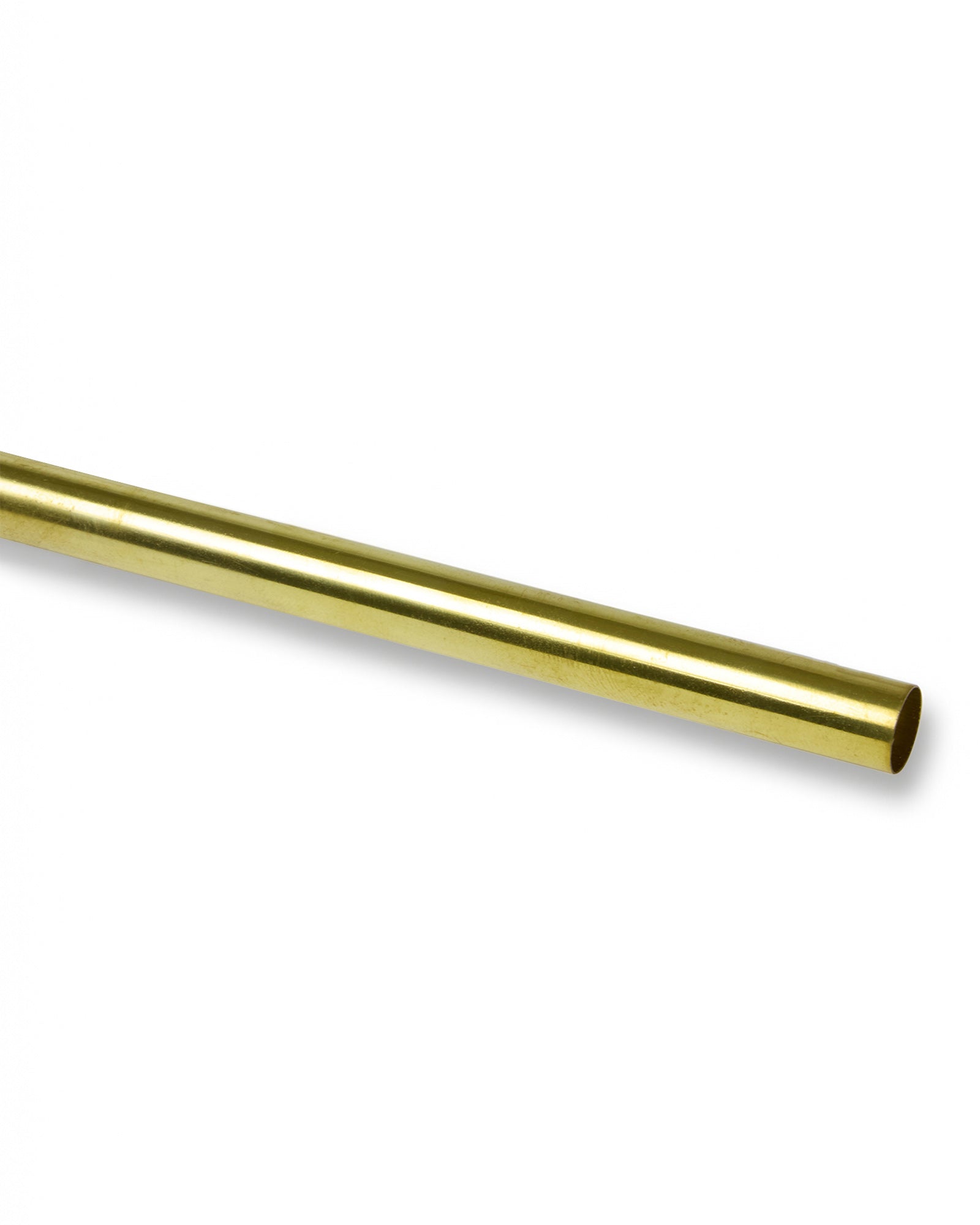 Tube en laiton à combiner avec des supports de tube et un bouton d’extrémité afin de créer une barre à tapis complète. Le laiton non traité foncera et se patinera naturellement avec le temps.