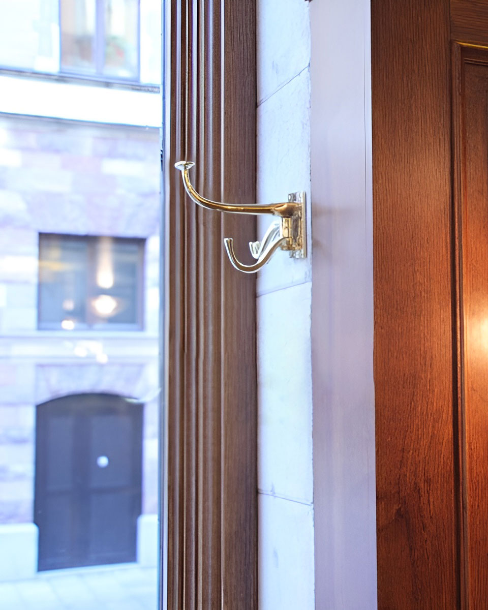 Magnifique patère moulée dans du laiton brut. Ce modèle est appelé « crochet de bateau » car il était autrefois couramment utilisé à bord des navires.