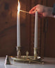 The candlestick is crafted from solid brass, making it stable and giving it a pleasant weight. The untreated brass will darken and develop a beautiful patina over time.