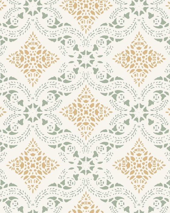 The pattern was originally part of a painted stenciled design and comes from the way the walls of the house were decoratively painted up to the 1860s. Stenciling dates back to the medieval period but was at its height in the eighteenth and nineteenth centuries. The stenciling technique was a popular way of decorating the walls of houses. It was common to stencil entire walls as an alternative to the more expensive recent innovation of wallpaper. Fragments of the old painting and the wallpapers have been preserved and can still be seen at Dahlströmska gården in Vadstena.