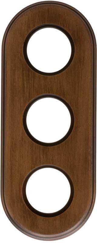 Wooden frame with space for three light switches or one electrical outlet in the Garby Colonial series from Fonini. The frame can be sawed to adjust the size for a narrow space, beside moldings, etc.