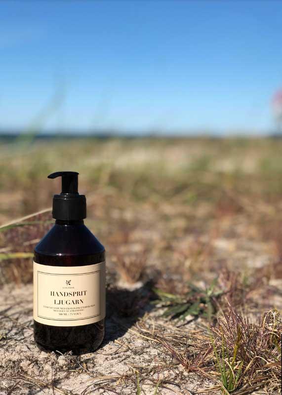 The hand sanitizer from Gotland, Sweden, contains organic essential oil and thus does not dry out the hands as other hand alcohol can do.
