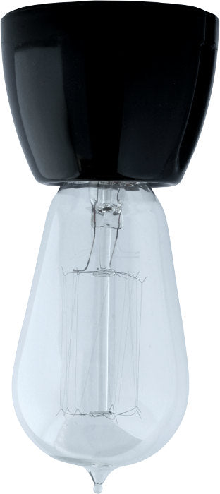 Lamp holder - Black porcelain, straight