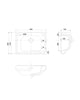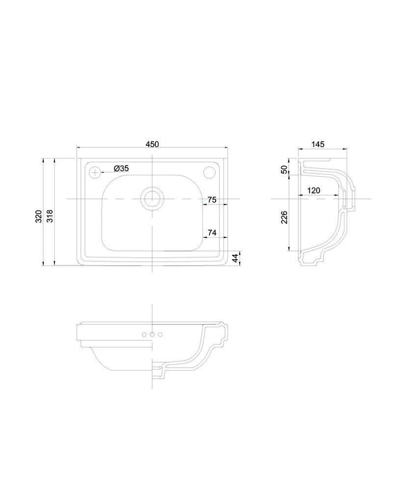 Beau lavabo avec deux trous pour mélangeurs ayant un diamètre de trou de mélangeur de 30 mm, ce qui permet aux robinets standards de lavabo de s'adapter. Ce lavabo a également ce qu'on appelle un chain stay, qui est un trou dans la céramique où la chaîne du clapet de vidange est fixée. Il est également possible de monter un mini-mélangeur légèrement incliné dans un trou et une pompe à savon ou une plaque de couverture dans l'autre, voir Produits associés.