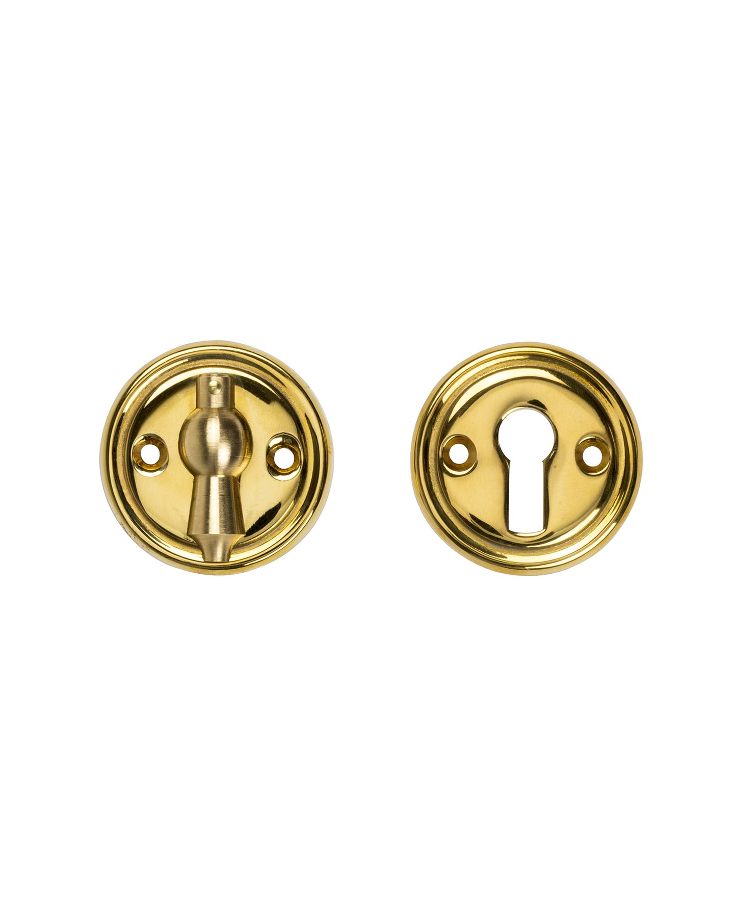Le prix comprend deux plaques de clé ainsi qu'une vis en bois. Veuillez noter qu'il n'y a qu'une seule des plaques de clé (placée vers la pièce) qui a un loquet. Traditionnellement, le loquet était utilisé à l'intérieur de la porte pour protéger contre les courants d'air et les passants curieux.