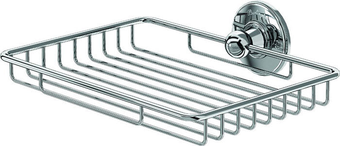 Burlington soap basket in chrome. Screws and plugs for wall mounting included. For detailed dimensions, see figure.