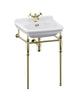 Washbasin in a classic style from the Guild series, featuring a lacquered brass stand. The tap hole and waste hole have standard dimensions, making it easy to combine with any mixer tap. Choose between one or three tap holes.