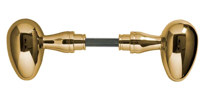 Gammeldags dørhåndtak i ubehandlet messing, laget etter eldre forlegg.