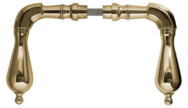 Et vakkert dørhåndtak fra århundreskifte i klassisk design, først og fremst beregnet på ytterdører. Dørhåndtaket er laget etter gammel modell. Den ubehandlede messingen vil eldes pent og mørkne over tid.