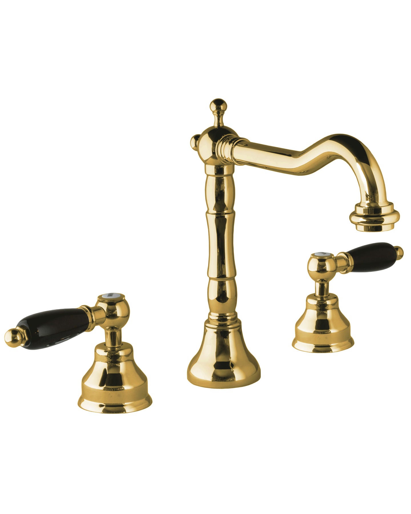 Chelsea er et vakkert trehulls servantbatteri med to svarte spaker for henholdsvis kaldt og varmt vann. Blandebatteriet passer i standard 35 mm hull og kobles til med standard 10 mm slanger som følger med. Det har keramisk pakning og leveres komplett med matchende bunnventil. Krana passer i standardhull for trehullsblandere: 30 mm på sidene og 35 mm hull for tuten. For detaljmål, se bilde.