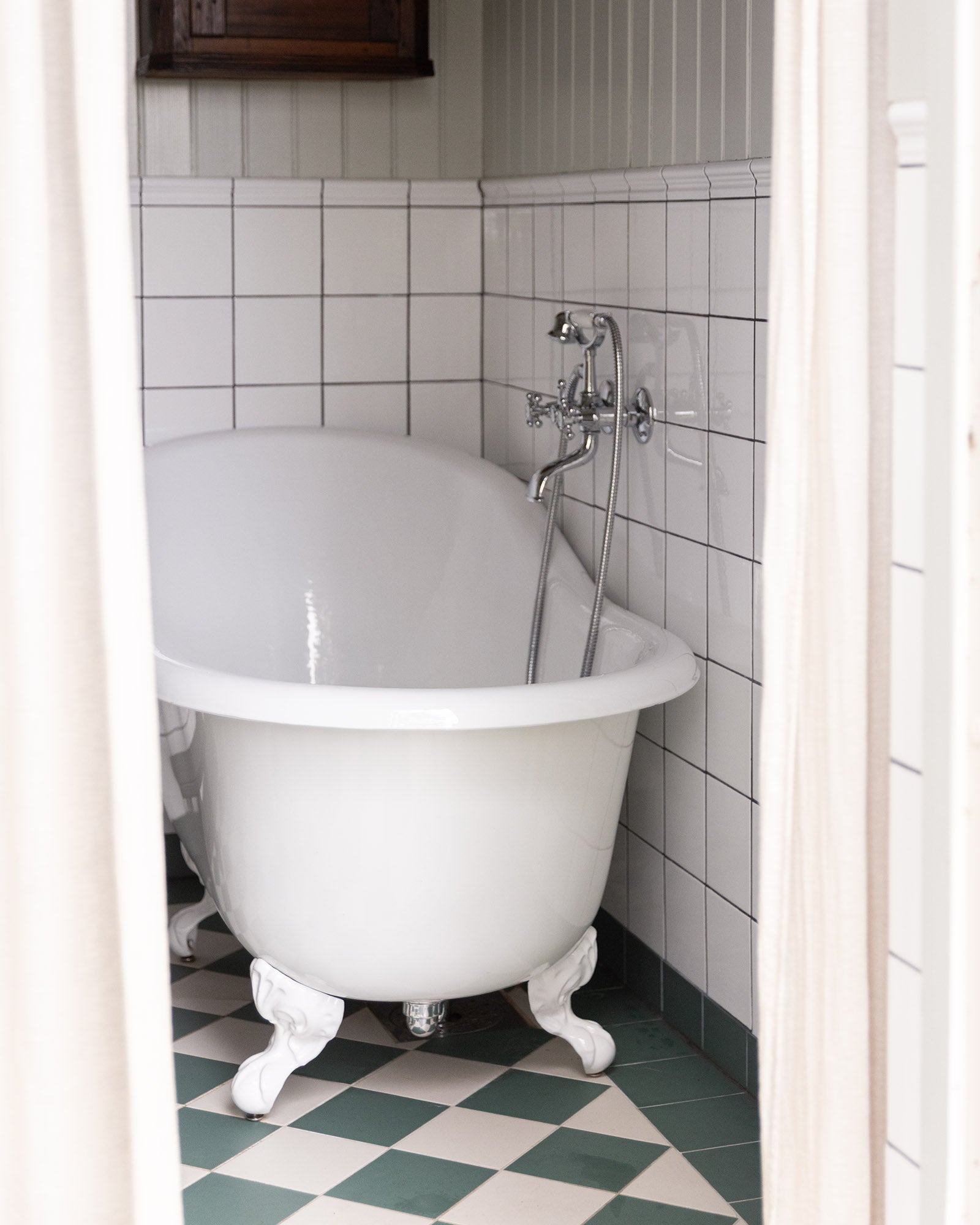 Mooie ouderwetse bad- en douchekraan, compleet met douchehandgreep en 150 cm slang. De kraan heeft een hartafstand van 150 mm, wat belangrijk is om aan de installateur door te geven.