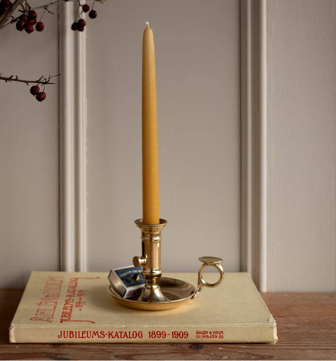 Klassisk kontorsljusstake i obehandlad polerad mässing.