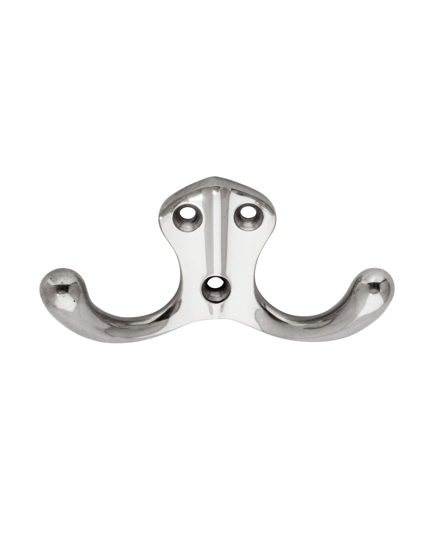 Klassisk dubbelkrok efter 1920-talsmodell i förnicklad mässing.