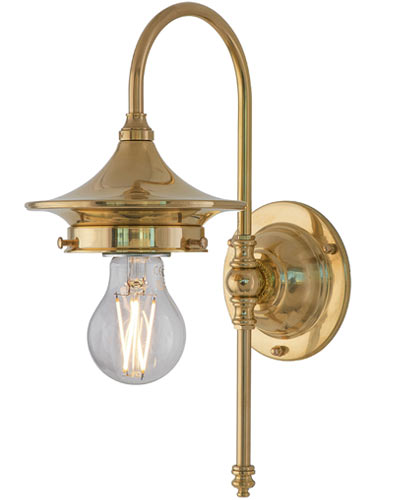 Klassisk vägglampa för badrum i mässing utan skärm.