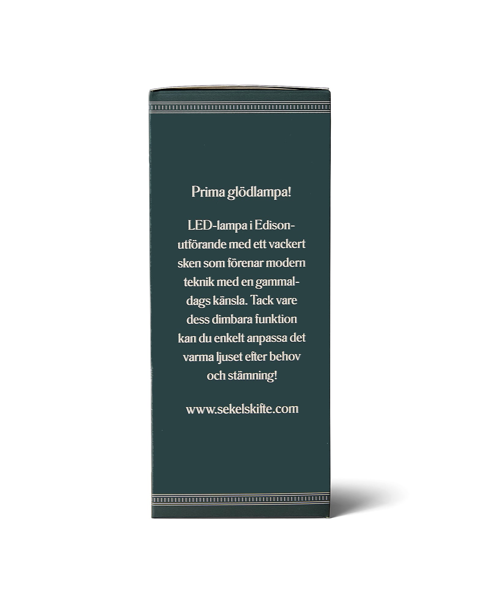 Fin LED-lampa med varmvitt sken (2300 Kelvin), dekorativ spiraltråd och en liten knopp på toppen av det bärnstensfärgade glaset. Tack vare dess dimbara funktion kan ljusstyrkan anpassas efter behov och stämning. Det tonade glaset sprider ett mjukt, behagligt sken som för tankarna till klassiska koltrådslampor.
