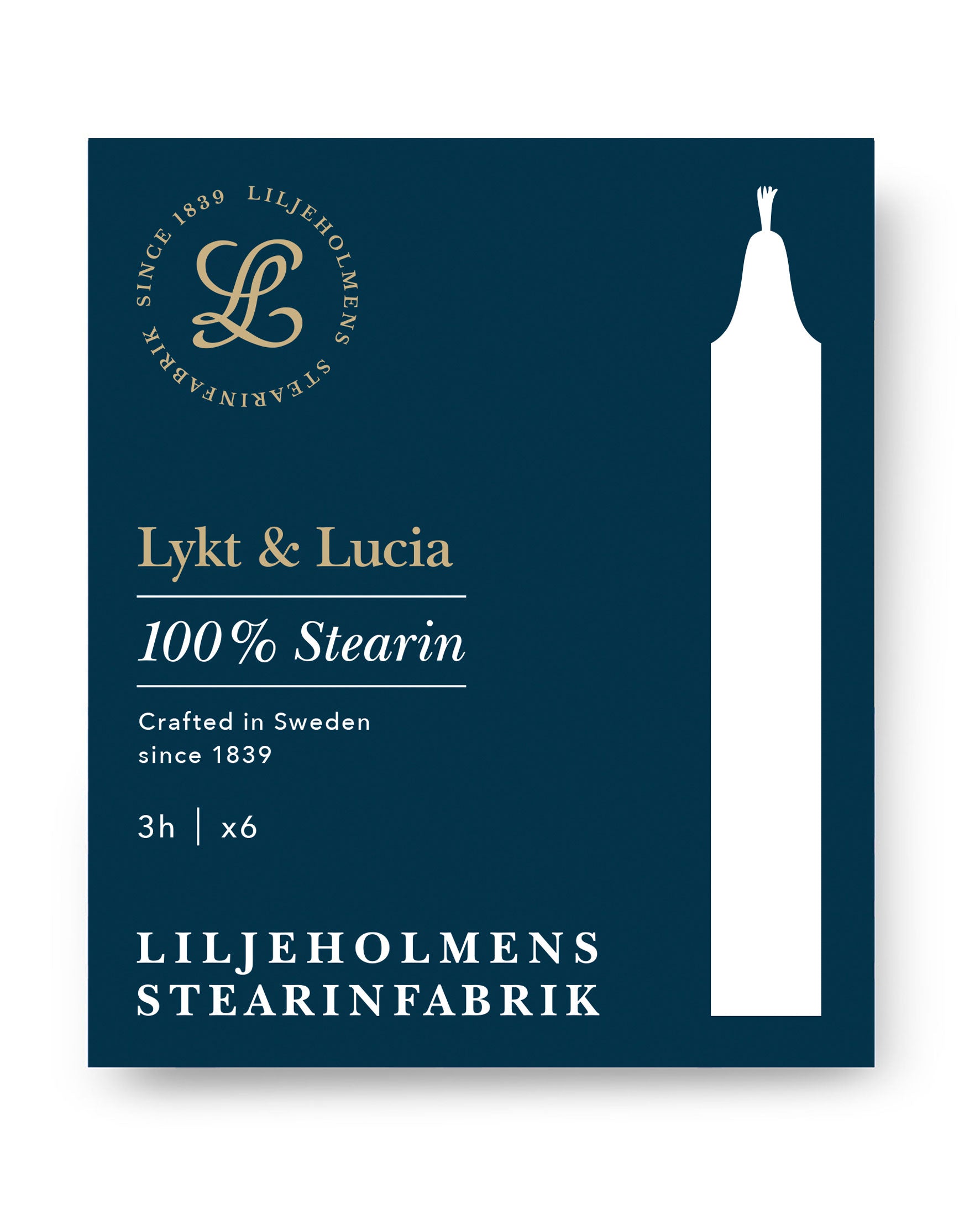 Liljeholmens Lykt- och Lucialjus är ett lite smalare Svanenmärkt stearinljus i vitt. Ljuset är tillverkat av 100% stearin. Ett klassiskt ljus som passar stearinljusstaken Karlskronalyktan och Karlskronalampetten.