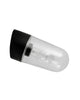Vinklad lampsockel i svart porslin med skärm i klarglas.