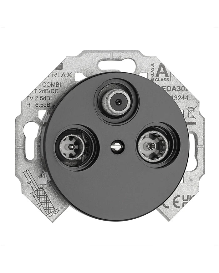 Multimediauttag i svart porslin utan ram för TV, radio och bredband.
